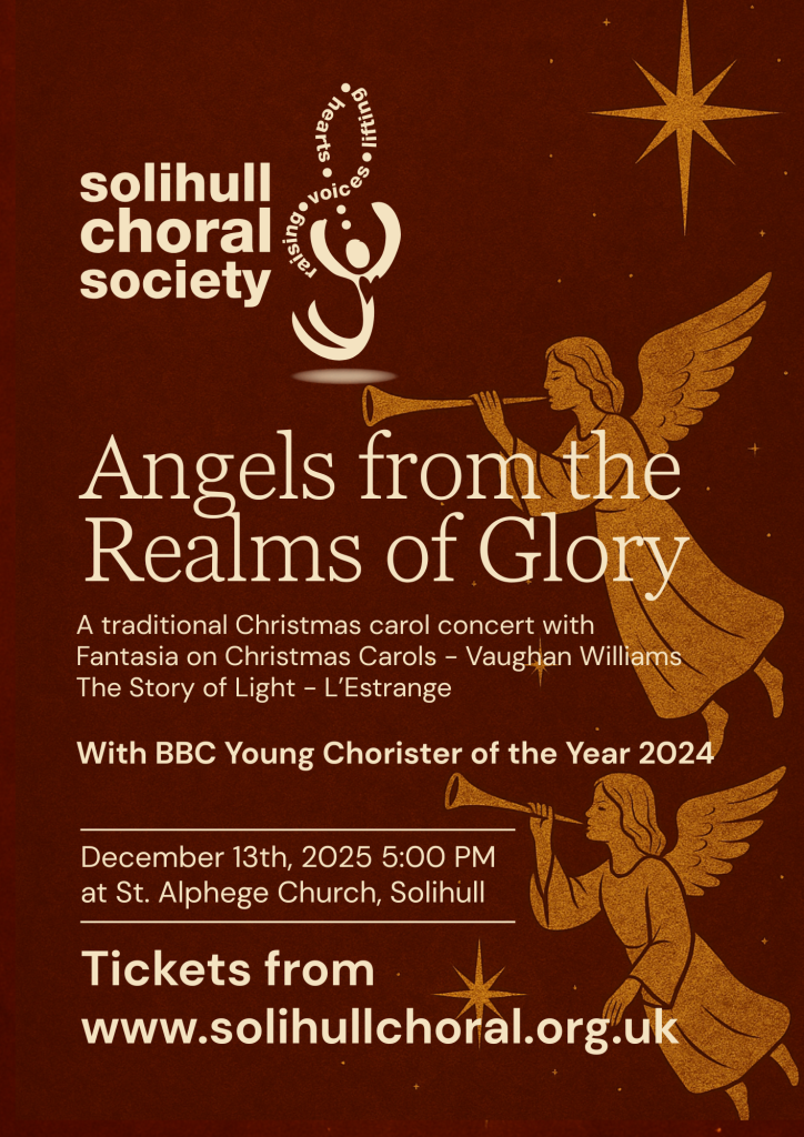 The traditional SCS Christmas Concert with Anna Chester (BBC Young Chorister of the Year 2024) and the Choristers of St Alphege Church on Saturday, 13th December 2025 at 5.00pm, St Alphege Church, Solihull